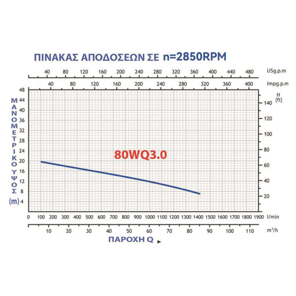 | Μανομετρικό ύψος(max) | 20,5 μέτρα |